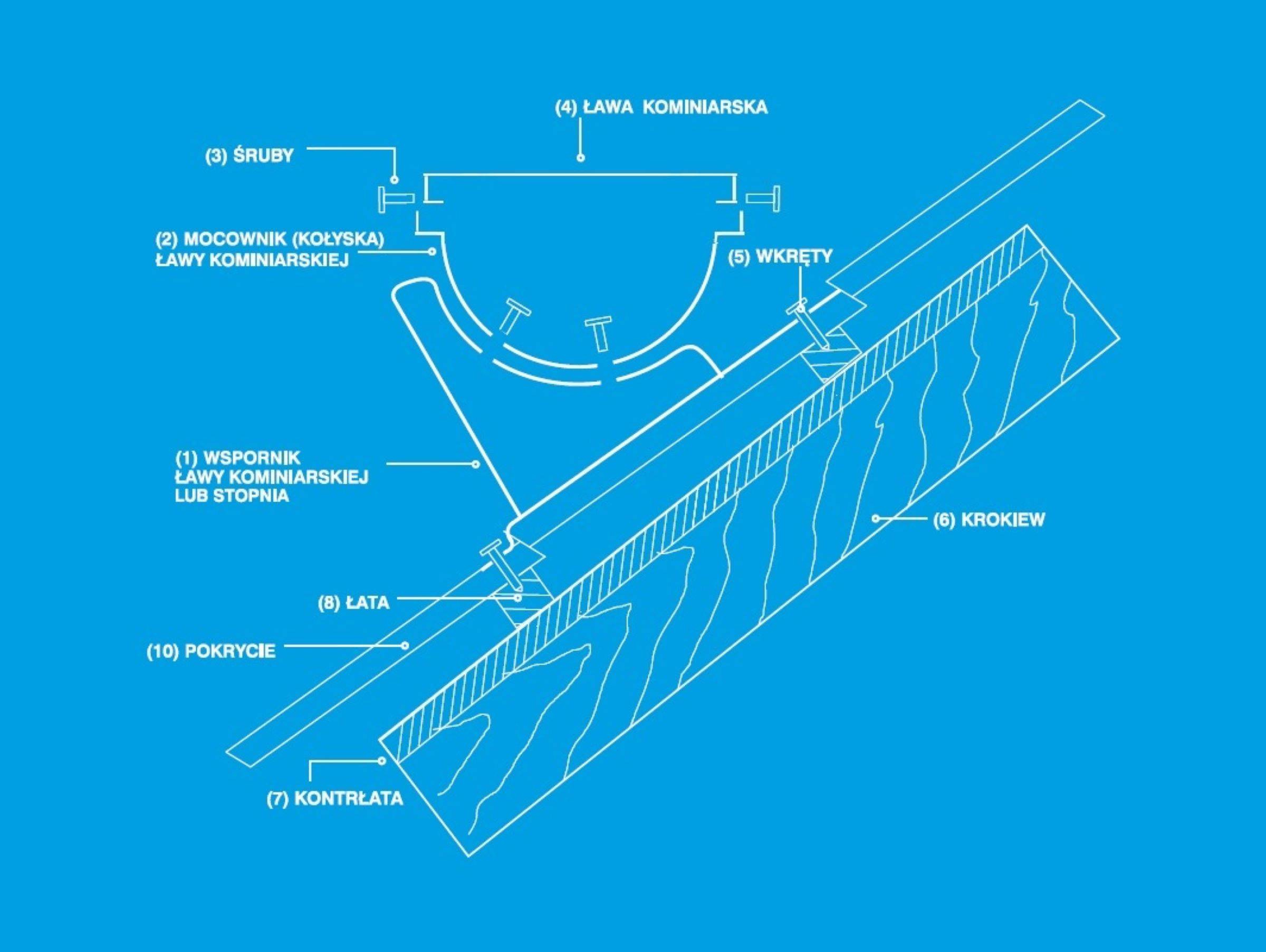 PAROTEC® BP 380/35 bench grip support - made of hot-dip galvanized and powder-coated steel sheet. Used for installation of steps and chimney benches on pitched roofs, fixed directly to the roof truss structure.