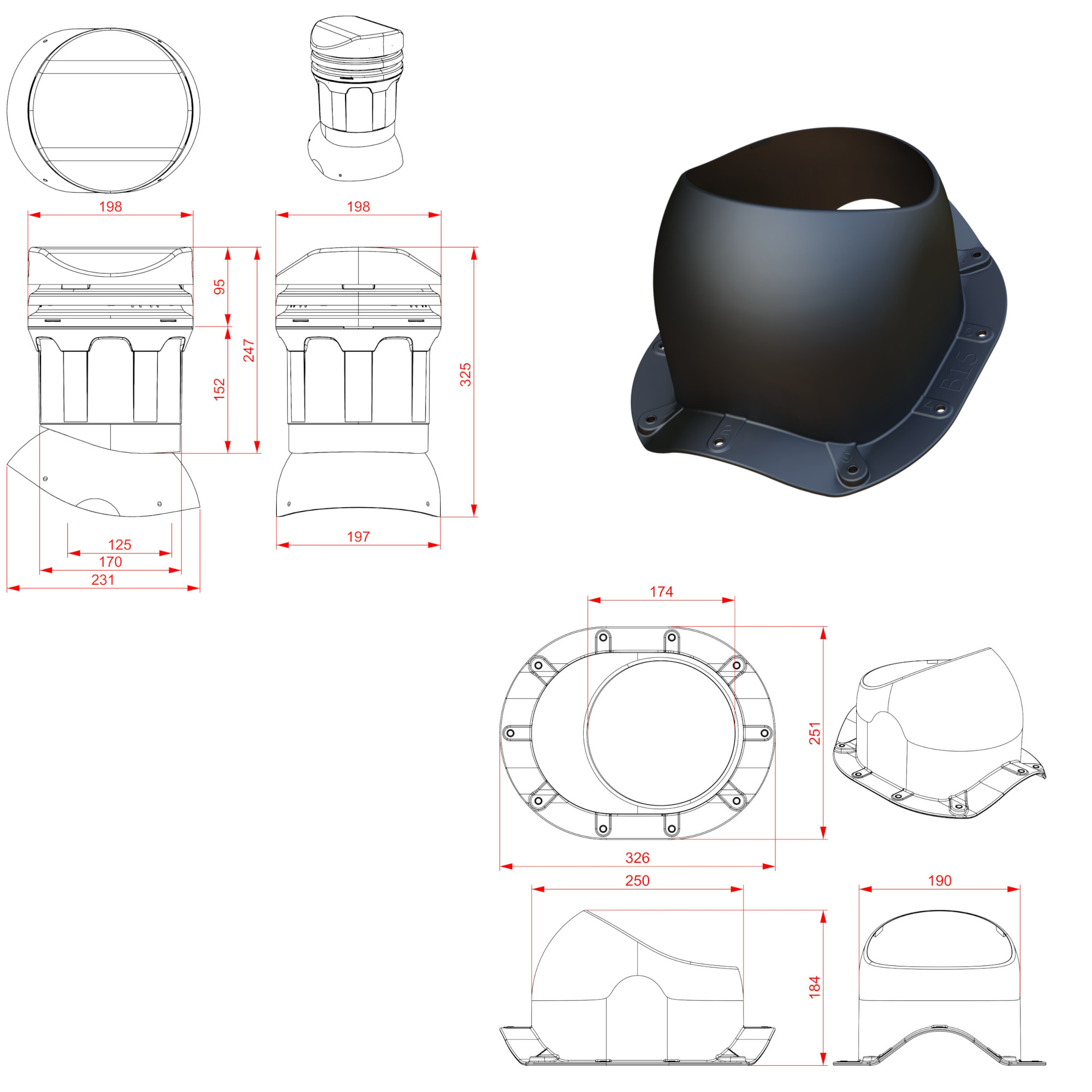 Sewer vent DN125 - A product used for venting sewer risers. It is part of the ventilation set, which allows you to maintain uniform aesthetics of the roof slope finish. It is mounted on roof adapters in the adjustment range from 0° to 50°. The package contains all the necessary components for installation on the roofing.