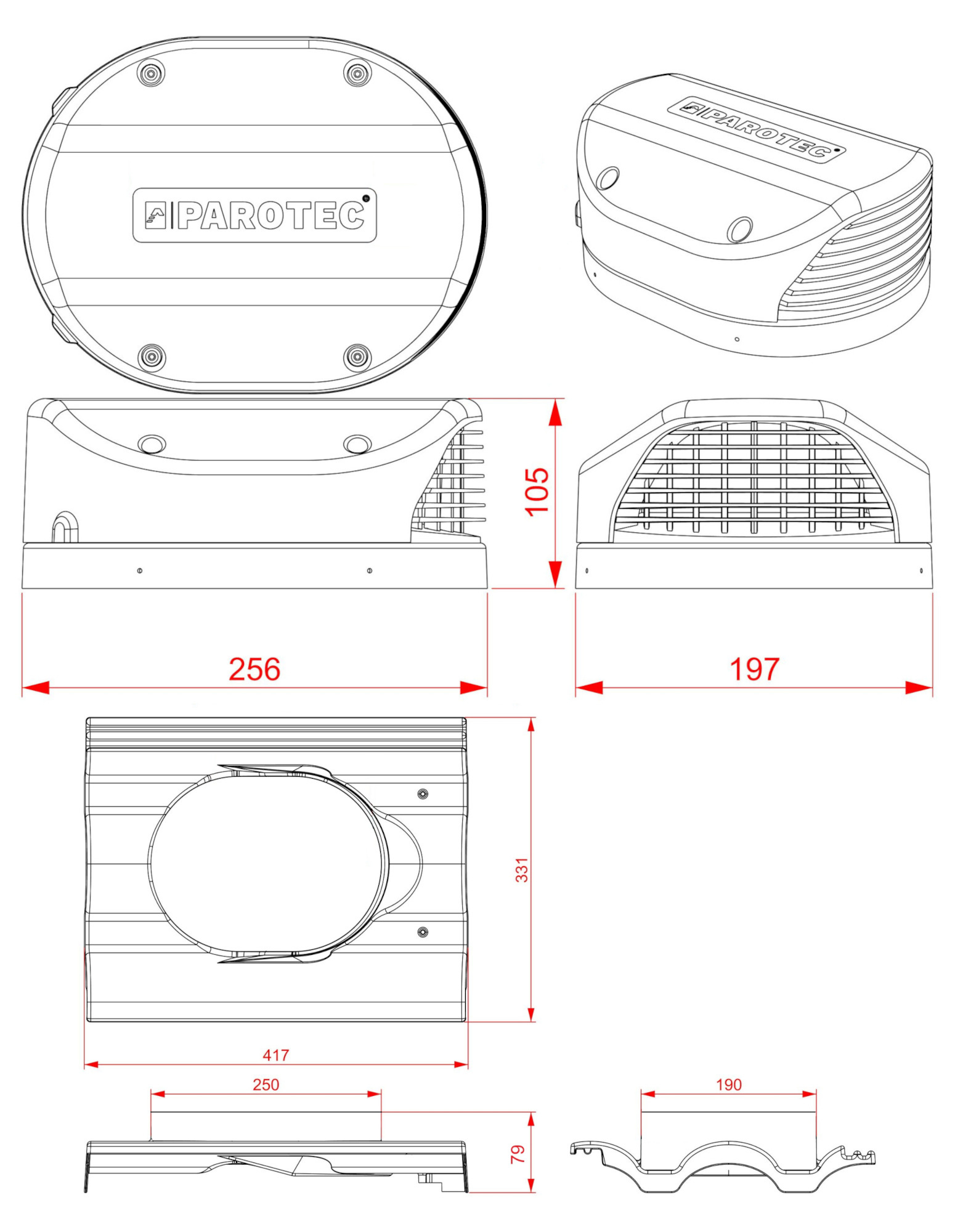 Slope vent - The product is used for ventilation of the space under the roofing. It is equipped with a grid to prevent smaller animals from getting under the roof slope. The removable cap allows maintenance work to be carried out. It is mounted on roof adapters and comes in RAL colors. A list of tile models is provided in the appendix.