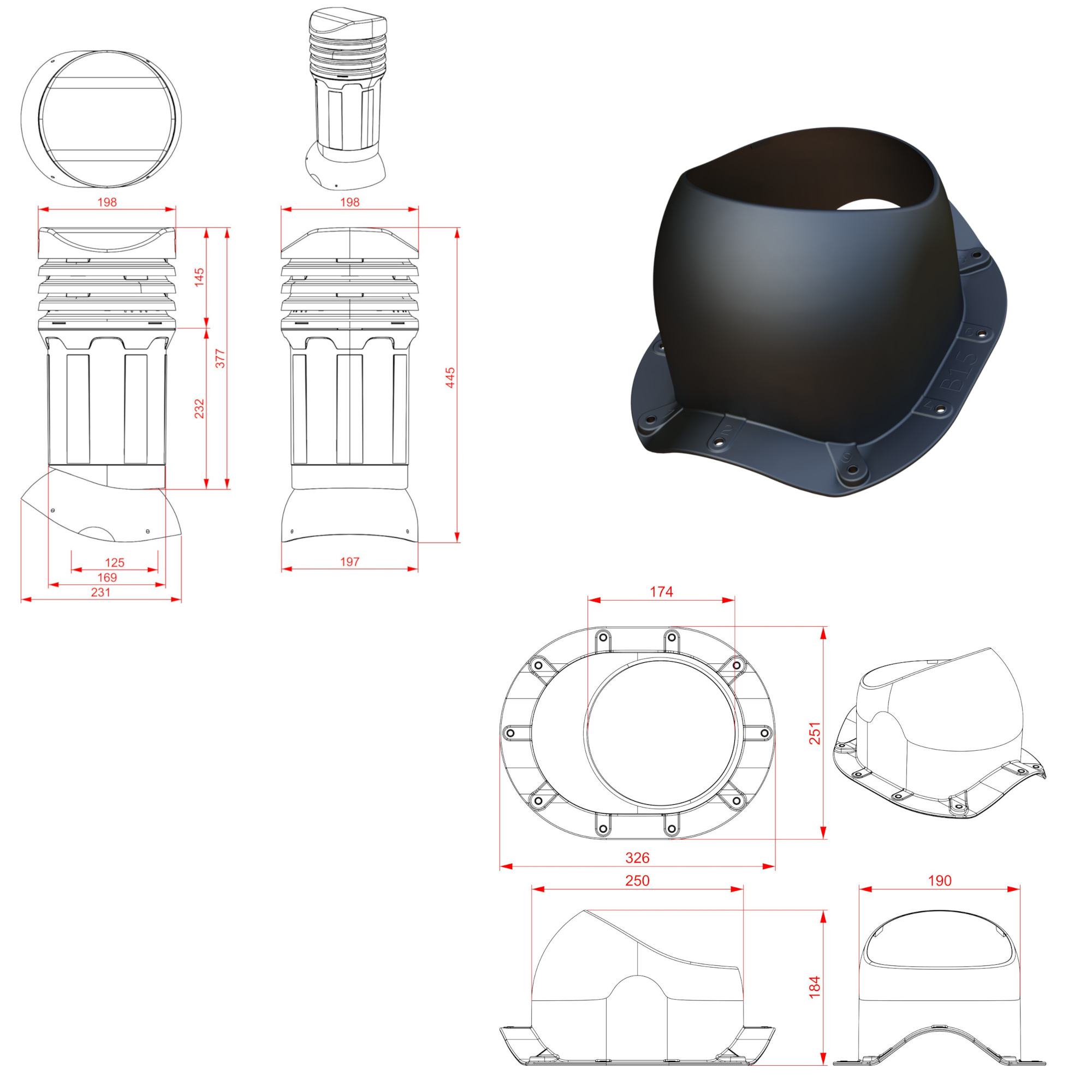 Insulated roof vent DN125 - The insulated version is provided with an additional thermal insulation layer that minimizes the formation of condensation in the roof vent duct. The roof vent consists of elements connected by the "click" method, which allows for quick assembly and disassembly of the cowl, for example, for technical inspection. Mounted within the range of adjustment from 0° to 50°. The package contains all the components necessary for the installation of the roof vent. For a list of roofing sheet and panel sheet models, see the appendix.