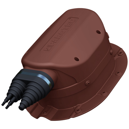 Solar passage - used to pass pipes for solar panels and photovoltaic cables through the roof slope. The cover of the passage is removable, and the rotating cap allows the wires to be brought out in any direction. It is made of thermoplastic elastomer (TPV). Allows sealing of the lead out wires. Mounted on roof adapters. Comes in RAL range.