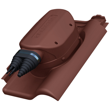 Solar passage - used to pass pipes for solar panels and photovoltaic cables through the roof slope. The cover of the passage is removable, and the rotating cap allows the wires to be brought out in any direction. It is made of thermoplastic elastomer (TPV). Allows sealing of the lead out wires. Mounted on roof adapters. Comes in RAL range.