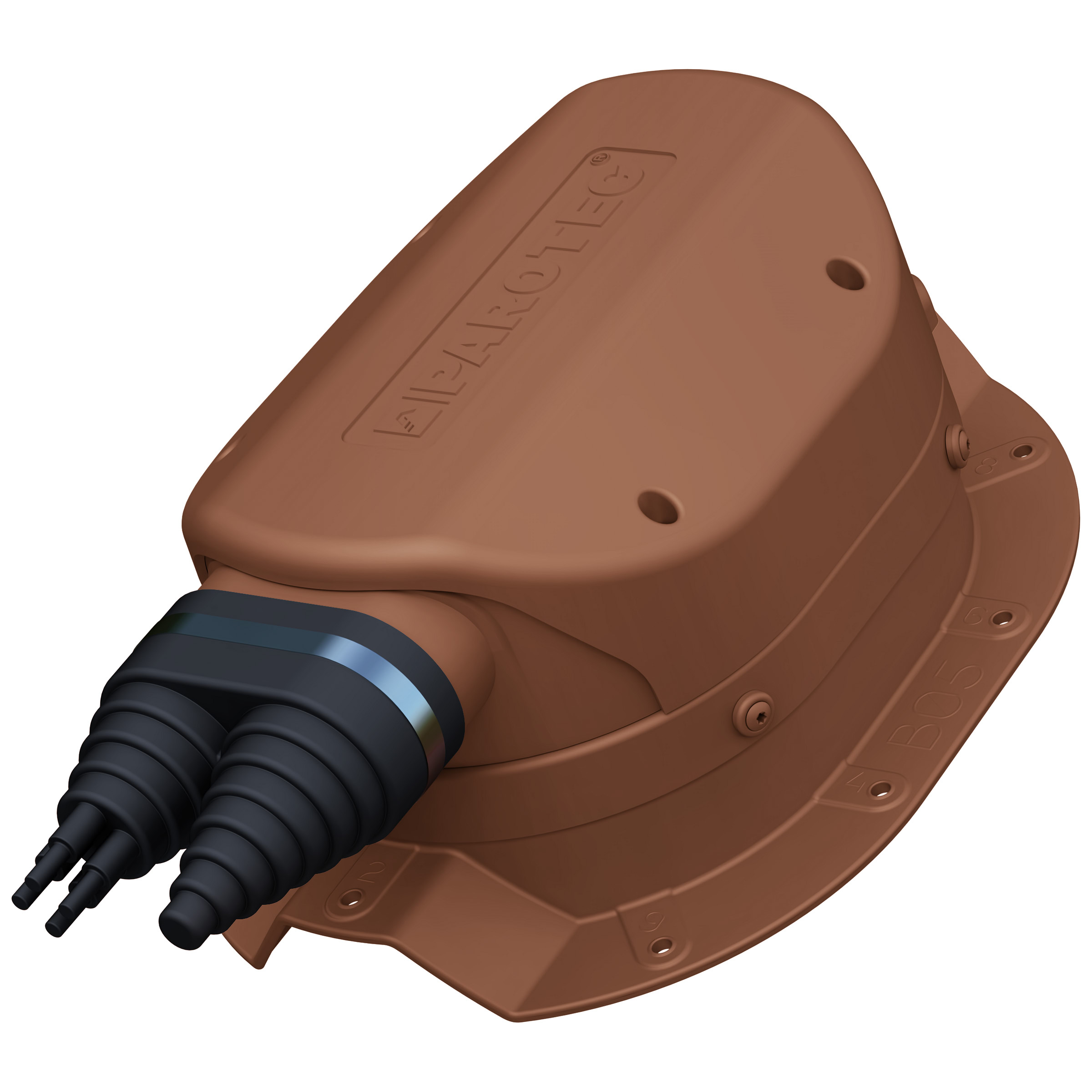 Solar passage - used to pass pipes for solar panels and photovoltaic cables through the roof slope. The cover of the passage is removable, and the rotating cap allows the wires to be brought out in any direction. It is made of thermoplastic elastomer (TPV). Allows sealing of the lead out wires. Mounted on roof adapters. Comes in RAL range.