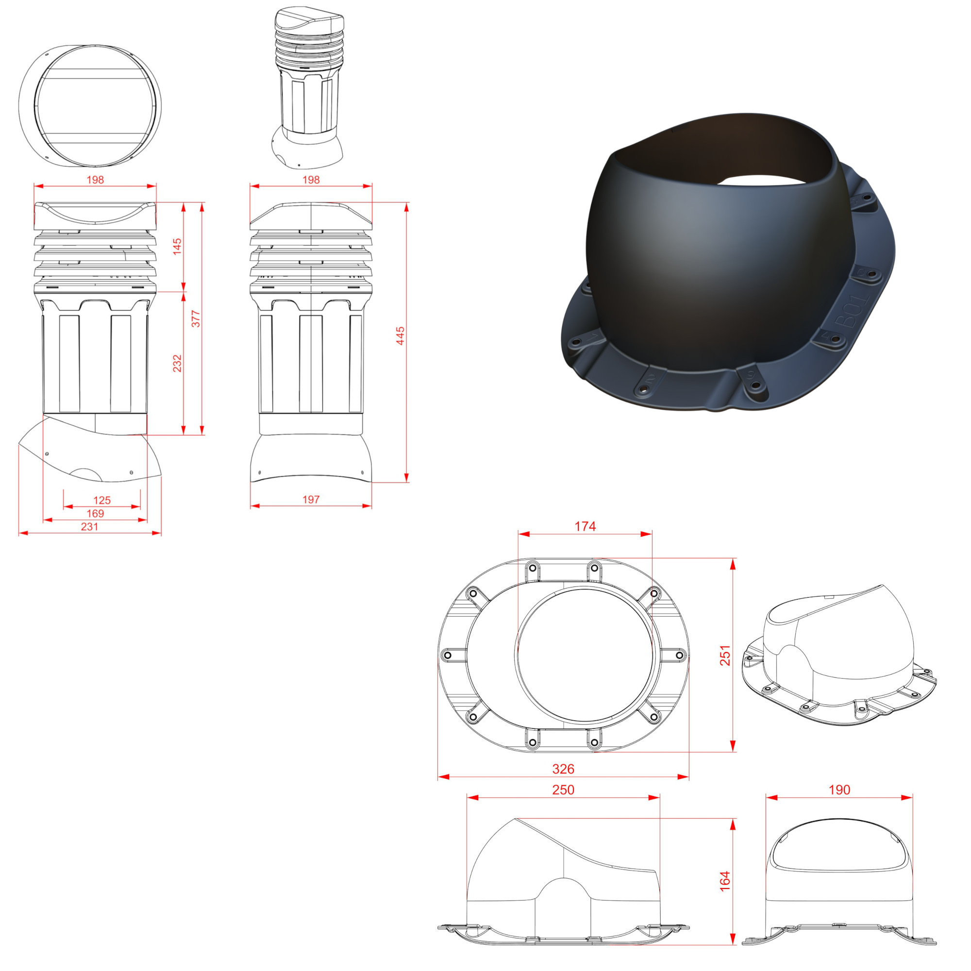 Insulated roof vent DN125 - The insulated version is provided with an additional thermal insulation layer that minimizes the formation of condensation in the roof vent duct. The roof vent consists of elements connected by the "click" method, which allows for quick assembly and disassembly of the cowl, for example, for technical inspection. Mounted within the range of adjustment from 0° to 50°. The package contains all the components necessary for the installation of the roof vent. For a list of roofing sheet and panel sheet models, see the appendix.