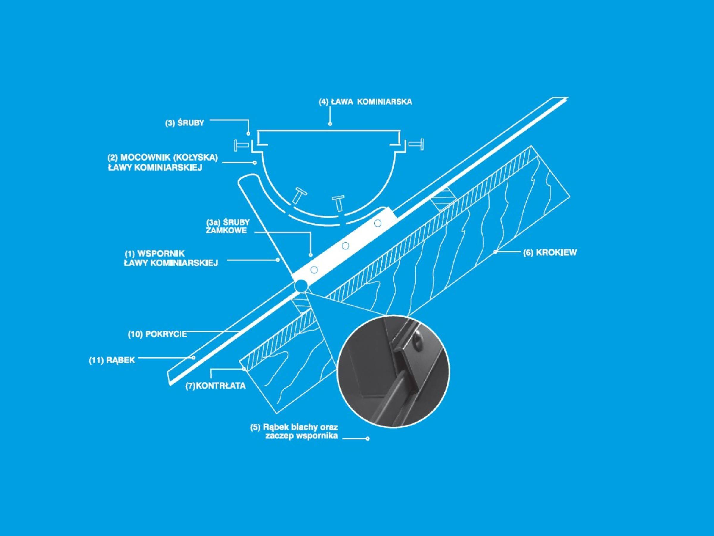 - Wspornik służący do mocowania stopni i ław kominiarskich. Model RĄBEK dedykowany do pokrycia z blach na rąbek stojący. Zawiera śruby montażowe.