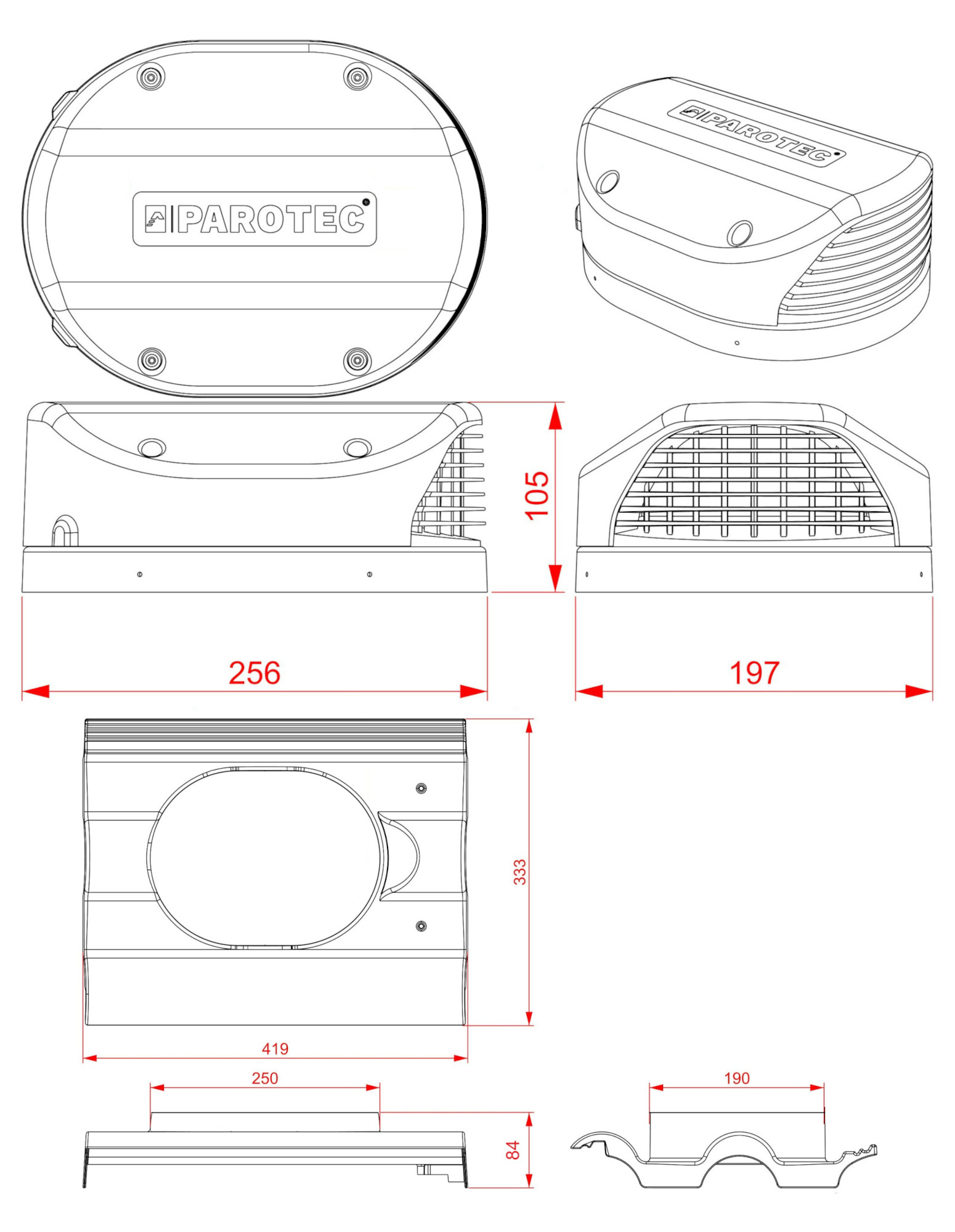 Wywietrznik połaciowy - Produkt służy do wentylacji przestrzeni pod pokryciem dachowym. Wyposażony jest w kratkę zabezpieczającą przed przedostawaniem się pod połać dachową mniejszych zwierząt. Demontowalna pokrywa umożliwia przeprowadzenie prac serwisowych. Montowany jest na przejściówkach dachowych i występuje w gamie RAL. Wykaz modeli dachówek znajduje się w załączniku.