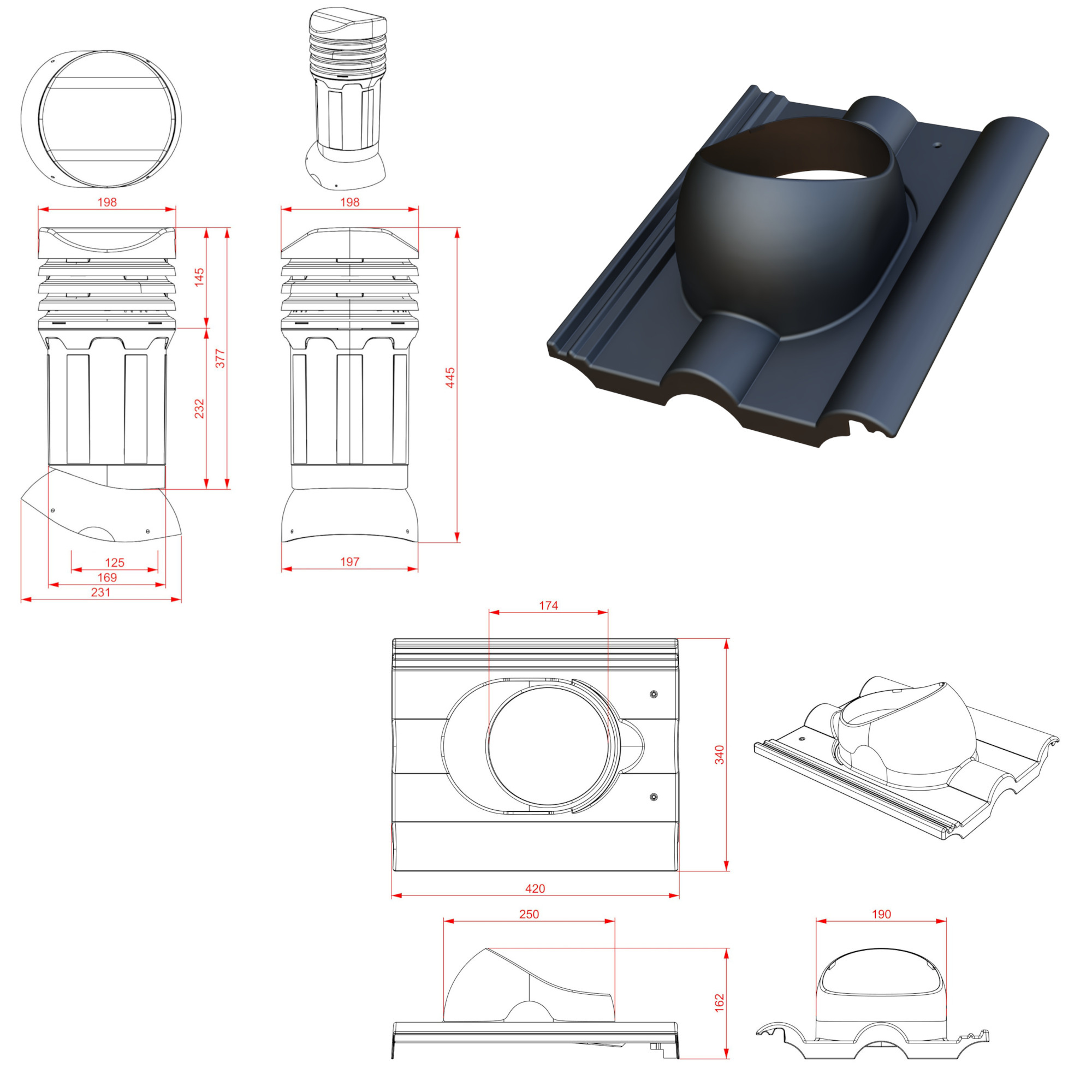 • Kompletny kominek wentylacyjny w wersji z odpływem kondensatu, dedykowany do pokrycia z dachówki.