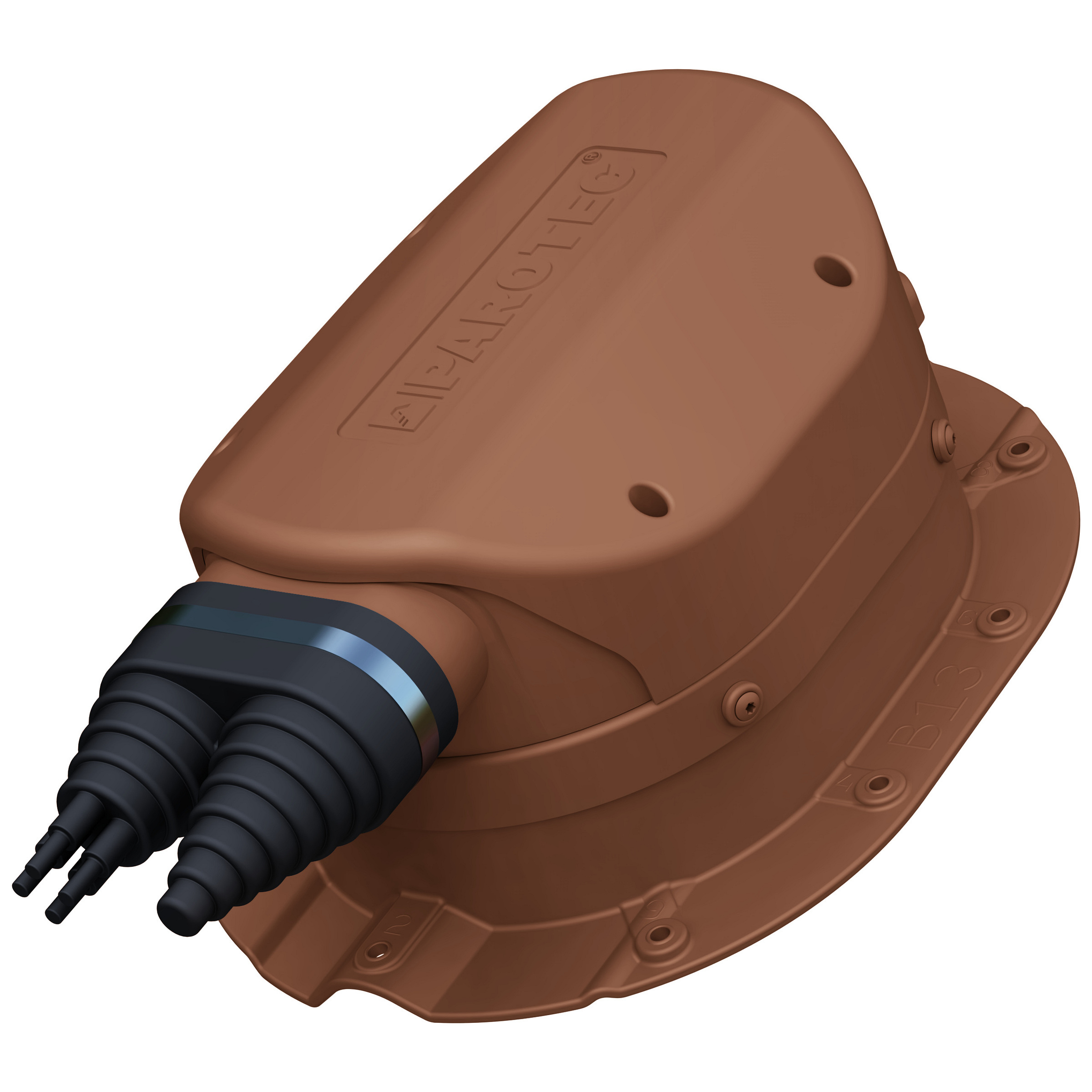 Przejście solarne- służy do przeprowadzenia przez połać dachową rur do paneli solarnych i przewodów fotowoltaicznych. Pokrywa przejścia jest demontowalna, a obrotowa nasada umożliwia wyprowadzanie przewodów w dowolnym kierunku. Wykonane jest z termoplastycznego elastomeru (TPV) i umożliwia uszczelnienie wyprowadzanych przewodów. Należy je zamontować na przejściówkach dachowych. Występuje w gamie RAL.